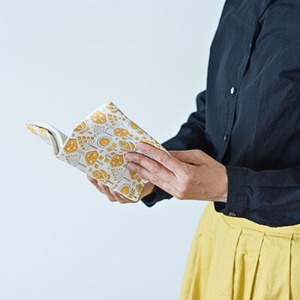 文庫本に対応した、片側折り込み式のブックカバーです。裏地に綿麻を使っているので、適度なハリと柔らかさがあり、ページをめくる手を邪魔しません。折り込みにより調整ができるので、軽めのエッセイからページ数の多い厚めのミステリーまでお使いになれます。