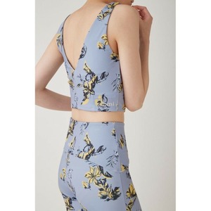 華やかに魅せる大人フェミニンなオリジナルフラワープリント柄。露出を抑えたトップスブラトップです。少し長めな丈はハイウエストレギンスと合わせれればさらに露出が少な目に。バックデザインは深めのVネックデザインを入れているので背中に抜け感を出し、すっきりとした印象。腕を上げた時にずり上りが無く安定感とホールド感しっかりしています。