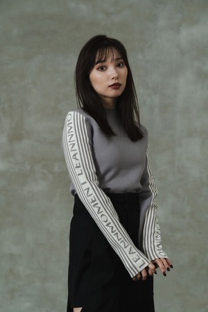 LEANN MOMENT Sleeve logo knit top / グレー / フリーサイズ