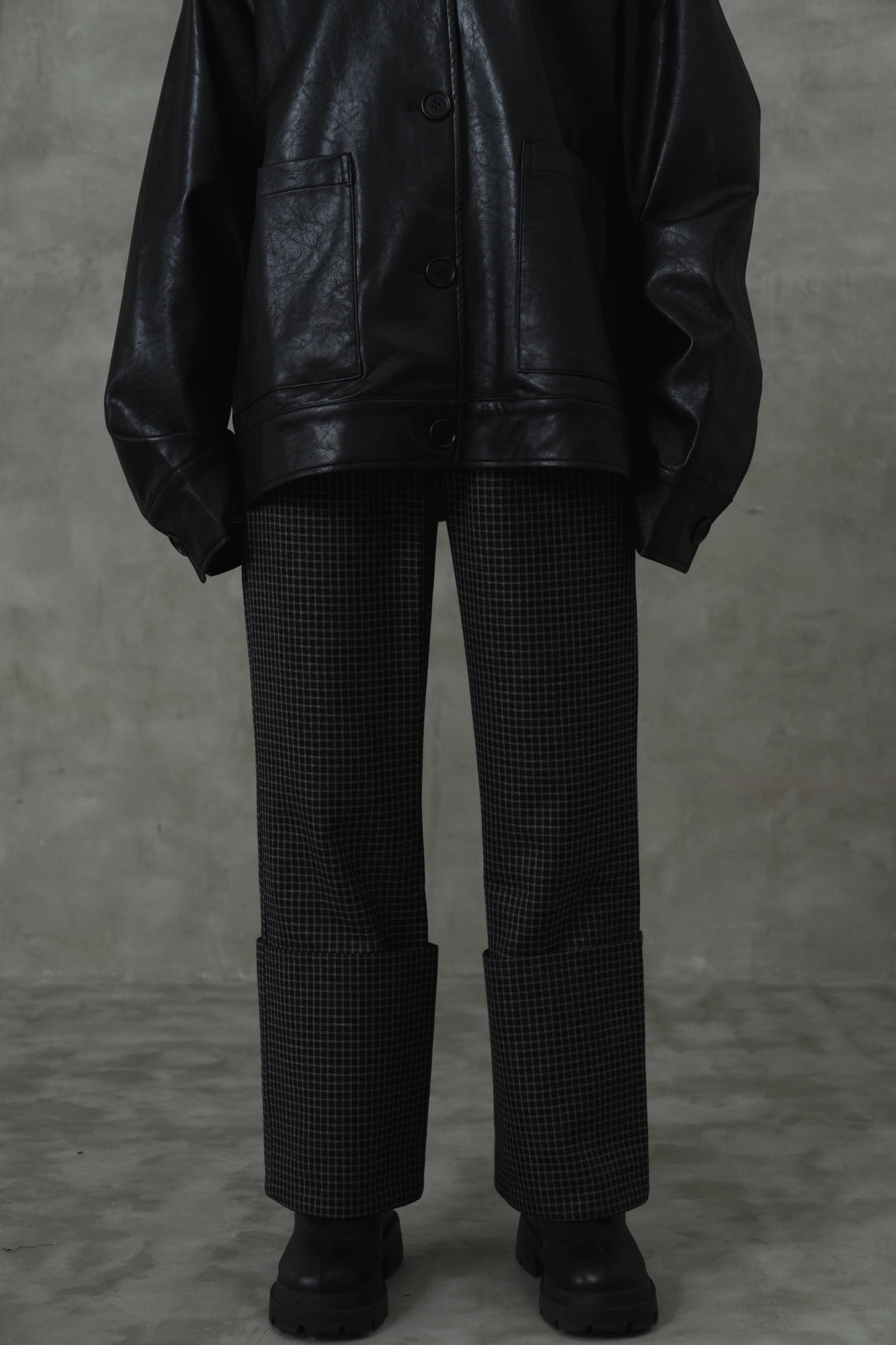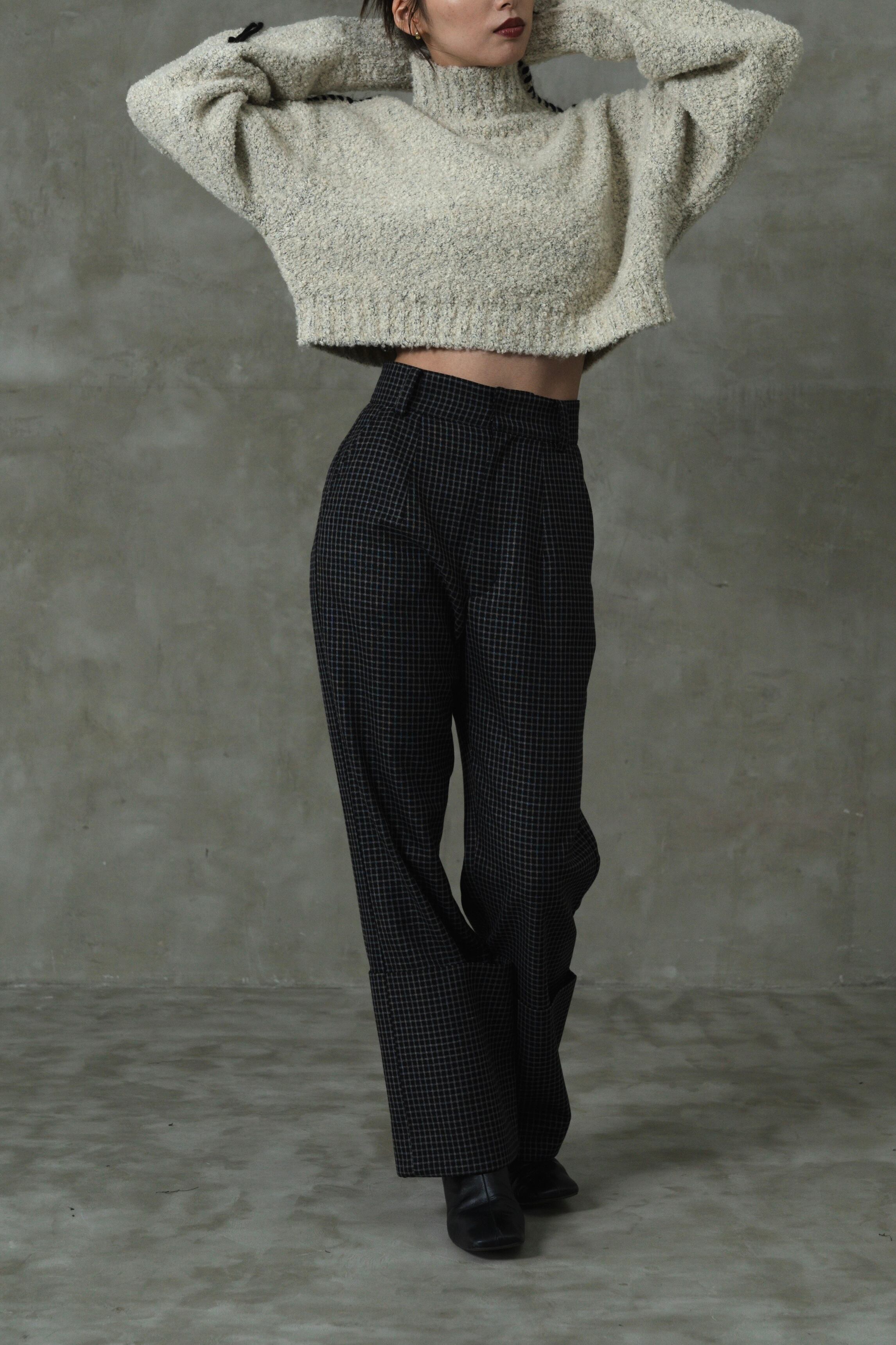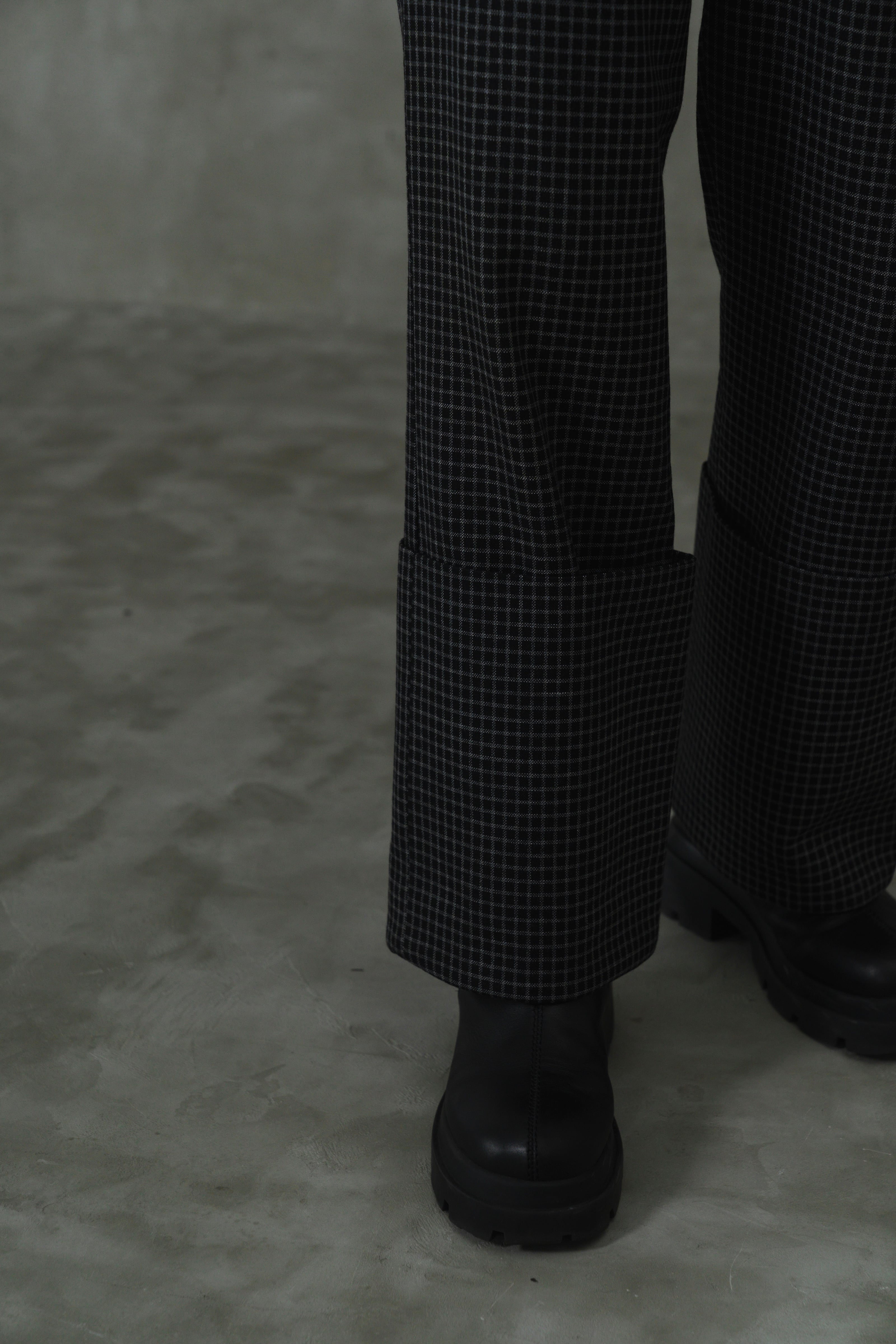 他にはない長めの折り返しが目を引く秋冬にぴったりなチェック柄の